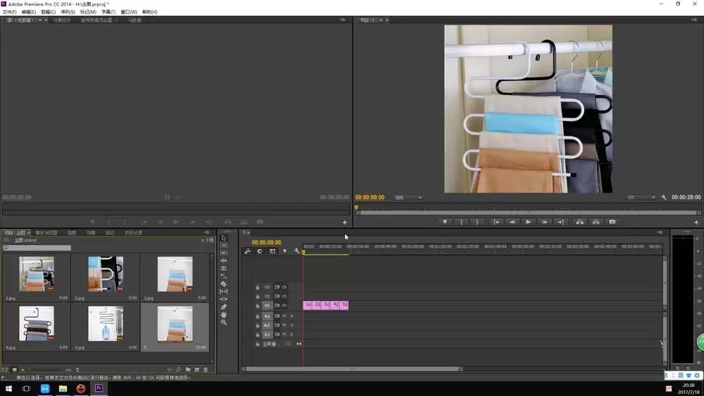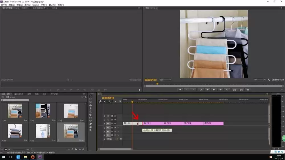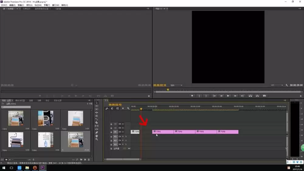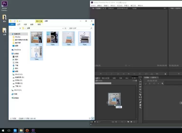 第二步,把准备好的图片素材,直接拖拽到软件下方的时间线面板里。这里有个小细节:当你把图片拖进去时,Premiere会自动创建一个与图片尺寸完全匹配的序列,非常省心。