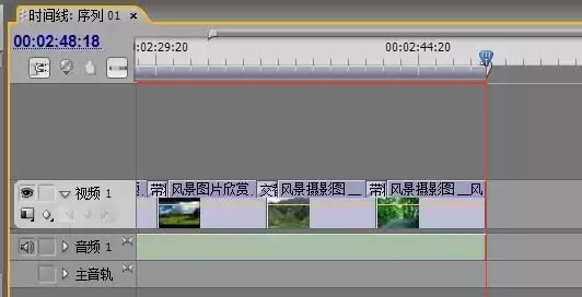 相册的主体部分完成后,需要处理一下背景音乐的长度。把播放指示器(那个蓝色的磁头)拖动到最后一张图片的结束位置。然后,点击时间线面板上的“跳到下一编辑点”按钮,这样播放指示器就会精准定位到所有图片结束后的那个时间点。