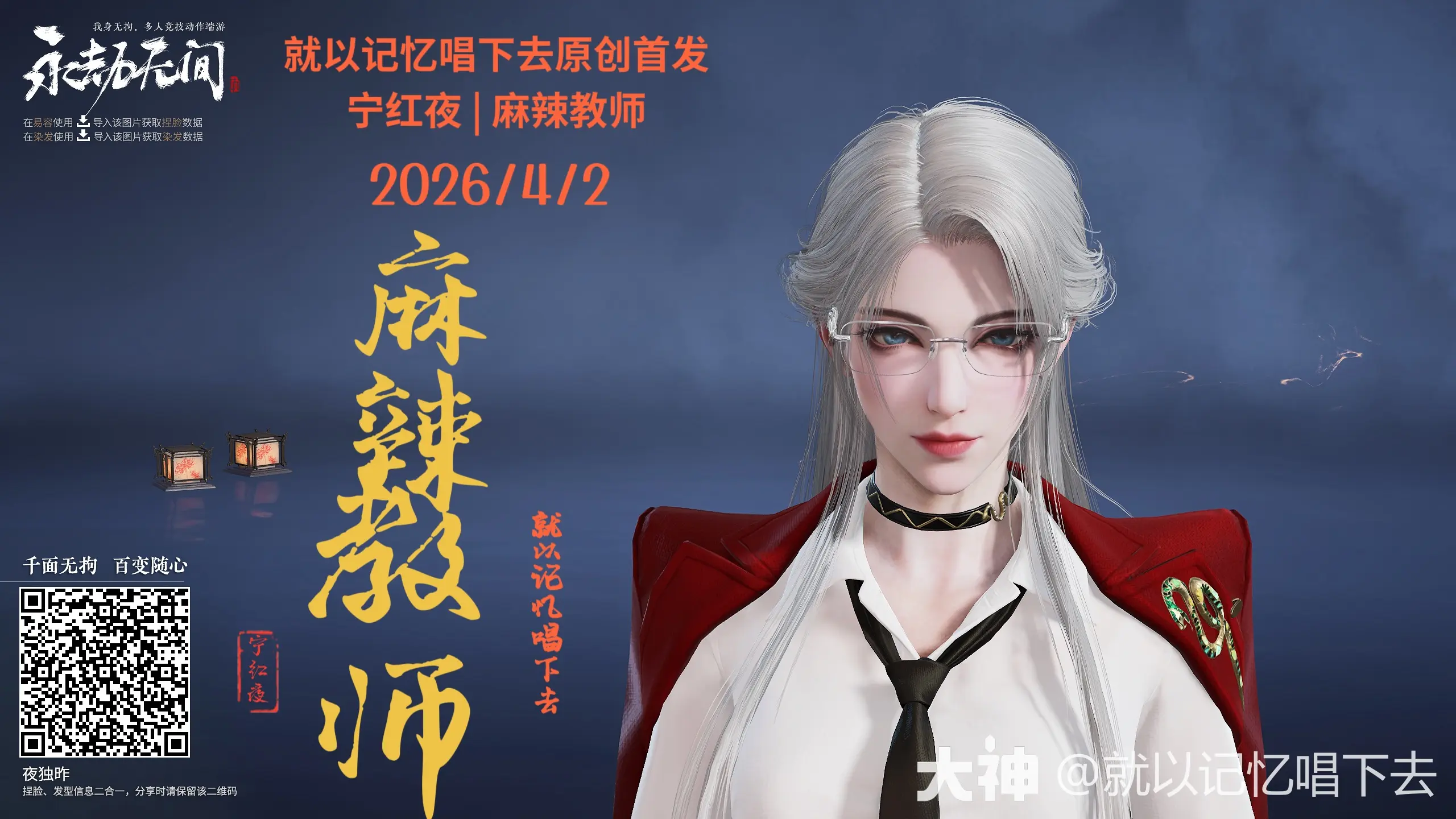 直接来看一组备受社区好评的宁红夜主题捏脸作品:【宁红夜捏脸x麻辣教师】。这套数据以其飒爽又带点锐气的教师气质吸引了许多玩家,并且创作者选择了无偿分享。