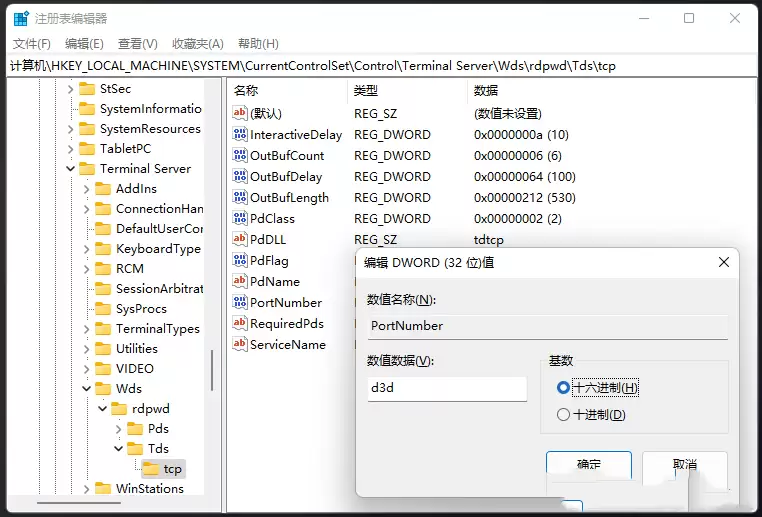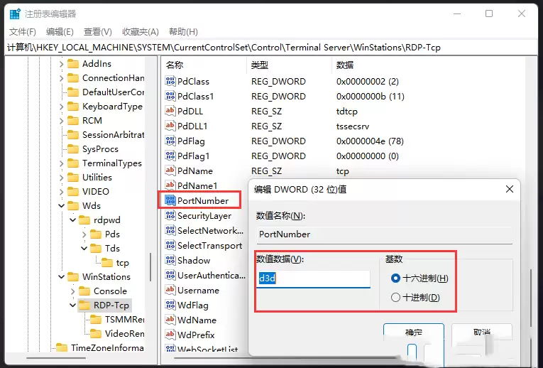 同样地,在这个路径下,你也会找到一个名为【PortNumber】的键值。没错,把它也修改成刚才设定的新端口号,比如12345。