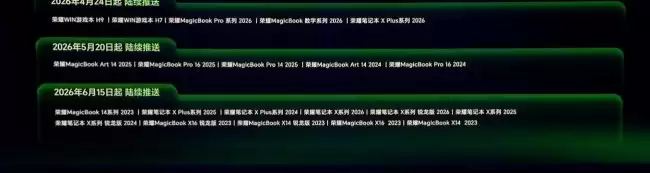 在今天的荣耀WIN游戏本暨全场景新品发布会上,除了新品亮相,还有一个消息让不少老用户感到振奋。荣耀官方正式公布了针对老款笔记本和平板的系统更新计划,这波“福利”覆盖了多款在售及往代产品。