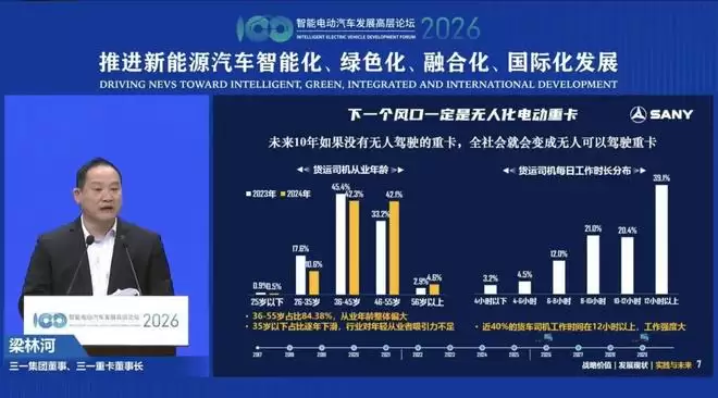话题深入下去,行业下一阶段的焦点是什么?答案是“无人化电动重卡”。一个现实瓶颈正摆在眼前:司机供给。数据显示,超过80%的卡车司机年龄在36至55岁之间,35岁以下占比不足10%。叠加长时间、高强度的工作特性,这份职业的吸引力正在持续下降。可以说,如果没有无人驾驶重卡,未来十年社会很可能面临运力短缺的严峻挑战。