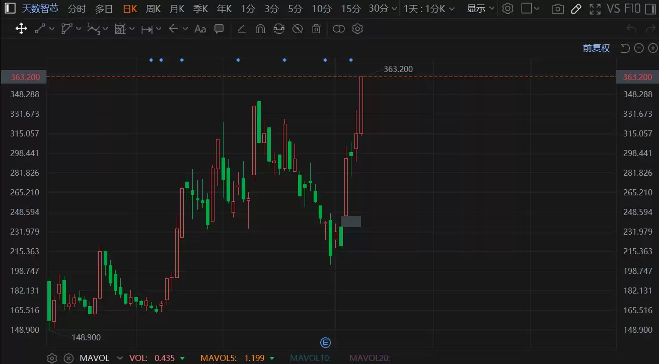 港股市场今日出现一抹亮色。中国通用GPU与AI算力解决方案提供商天数智芯(9903.HK)股价大幅拉升,涨幅超过15%,报363.2港元,刷新了上市以来的新高。更值得关注的是,其股价在短短一个月内的累计升幅已超过70%,公司总市值也随之突破920亿港元大关。