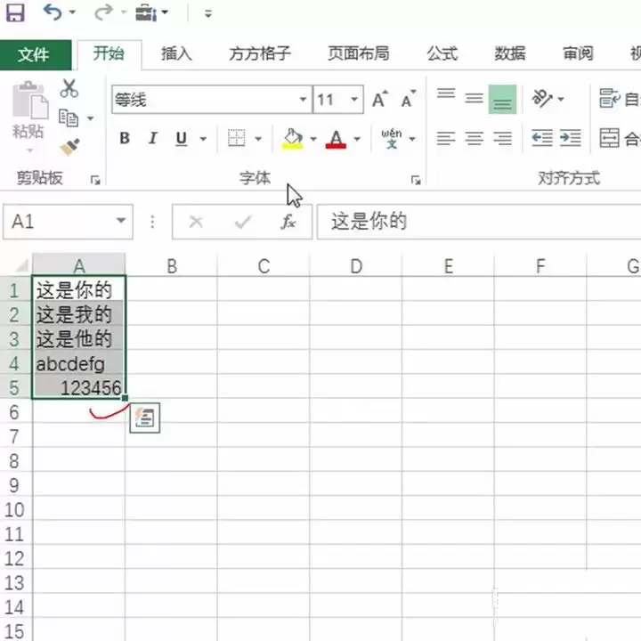 2、接着,用鼠标选中包含目标文本的数据区域。这一步很关键,确保你选中的正是需要倒序处理的那部分单元格。如下图所示: