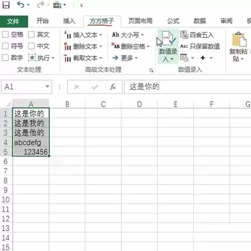 3、然后,将目光移到Excel的工具栏。这里需要借助一个名为“方方格子”的实用插件。如果你还没安装,需要先获取并加载它。找到它之后,界面如下图所示: