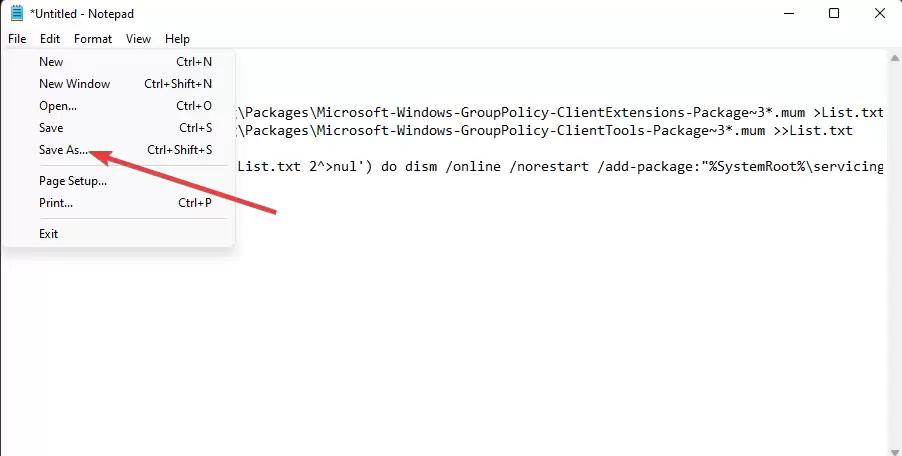 dir /b %SystemRoot%servicingPackagesMicrosoft-Windows-GroupPolicy-ClientTools-Package~3*.mum >>List.txt