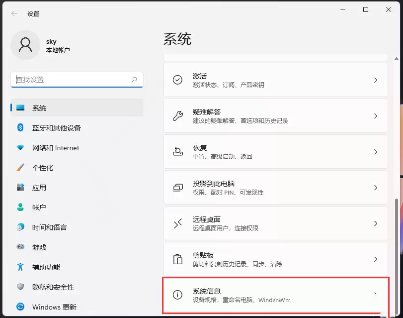 进入Windows设置窗口后,把页面拉到最底部,找到并点击【系统信息】这个选项。这里会显示你的设备规格和Windows版本详情。