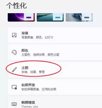 第二步: 进入个性化设置页面后,在右侧的选项列表中找到并点击“主题”。