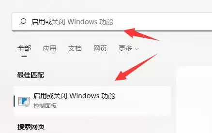 2. 接着,在搜索框中输入并打开“启用或关闭 Windows 功能”。