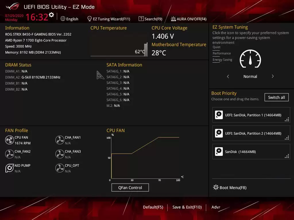 1. 同样,在开机出现华硕Logo时,连续按 Del 或 F2 键进入BIOS。进入后,按F7切换到“Advanced Mode”(高级模式)。对于ROG系列主板,通常默认就是高级模式。