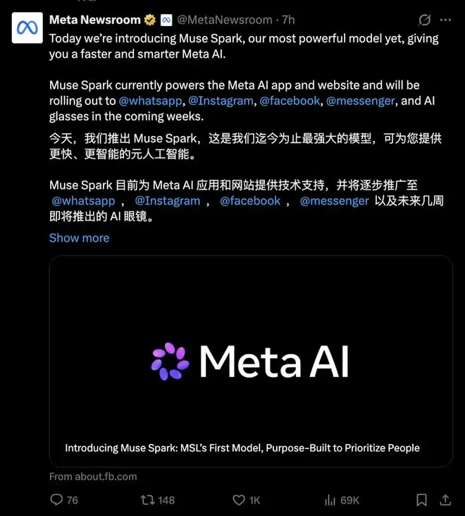 您的位置:首页 >Meta发布Muse Spark:华人天团废墟重建,最恨Llama的果然是小扎自己