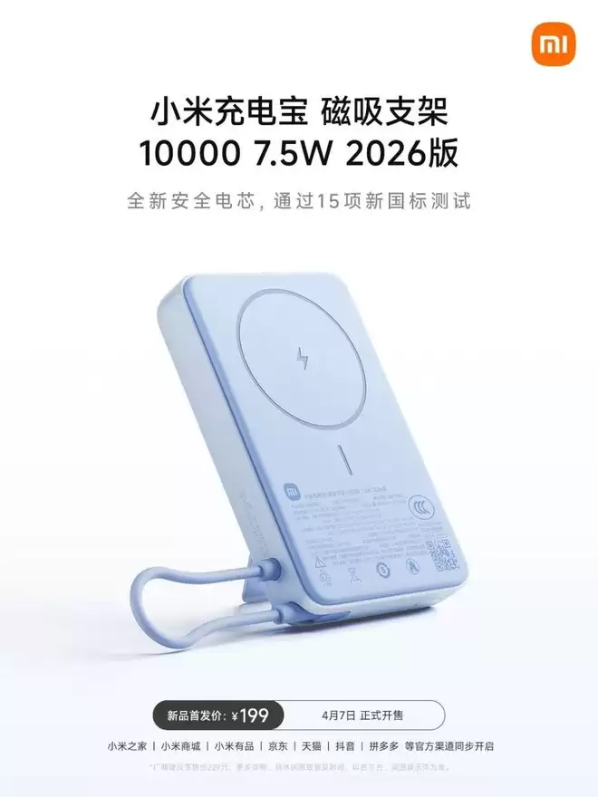 行动不止于计划,小米同期带来了首款符合新规精神的产品——小米充电宝 磁吸支架 10000 7.5W 2026版。这款产品采用全新安全电芯,据称已通过15项新国标测试。它搭载了全新一代安全电池,拥有12项保护设计,并新增智能管理功能,可读取电池状态信息。其支架设计兼顾了磁吸与插线两种使用方式,实用性颇高。