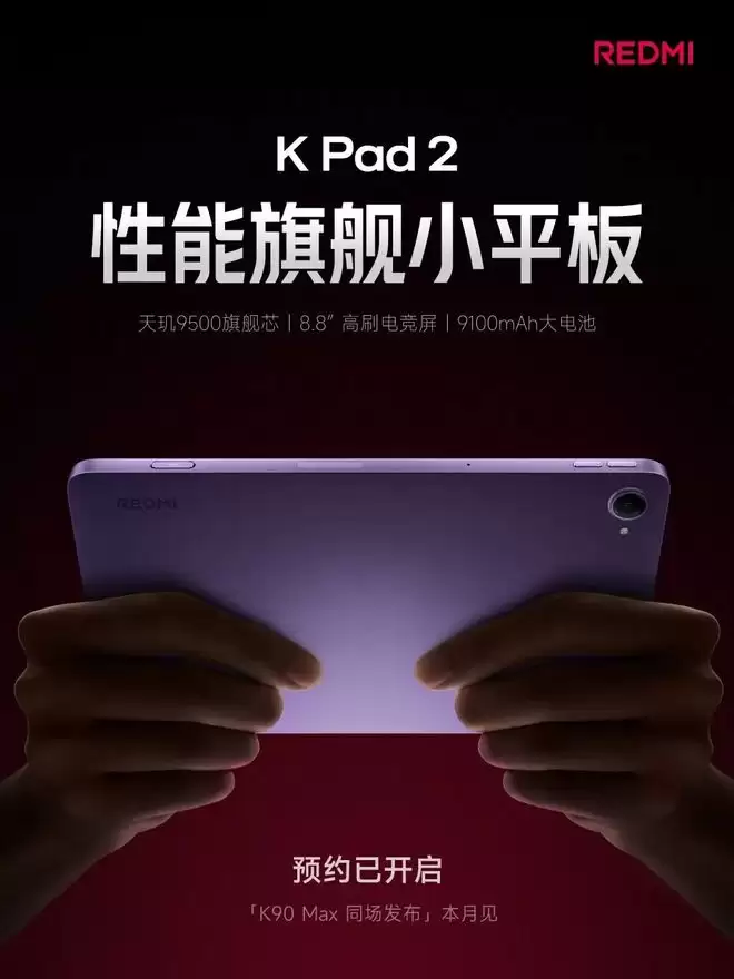 与K90 Max同场发布的,还有REDMI K Pad 2新一代性能旗舰小平板。这款产品核心搭载天玑9500旗舰芯片,采用8.8英寸这一被视为“黄金便携尺寸”的屏幕,并配备了165Hz高刷电竞屏,显然是为追求高性能与便携性的用户所准备。