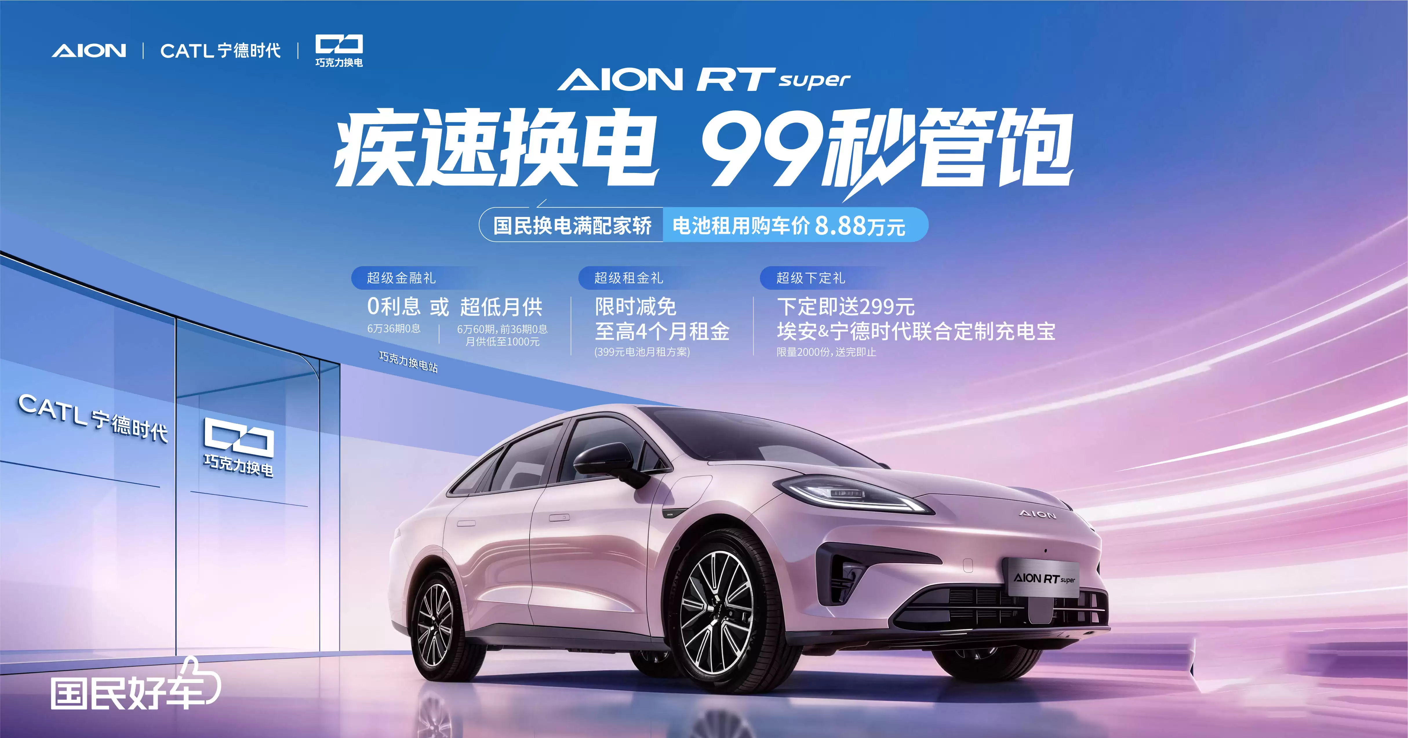 您的位置:首页 >埃安RT super换电版上市:99秒极速换电 购车价8.88万享多重权益
