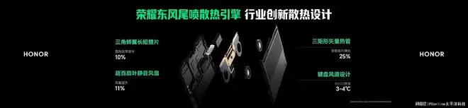 荣耀WIN游戏本是本次发布会的重头戏,其搭载的东风散热技术,解决了不少游戏本长期存在的结构性难题。通过全新设计的风道结构和先进的散热材料,荣耀成功将高性能处理器产生的热量快速导出,从而在相对轻薄的机身内,实现了持续稳定的高性能输出。