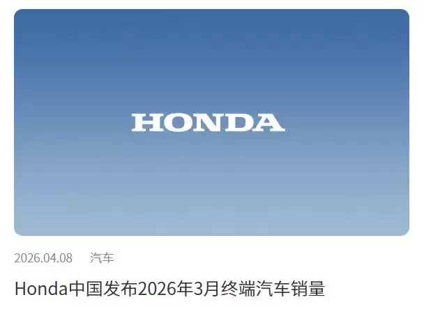 4月8日消息,本田汽车公布了其2026年一季度在中国市场的终端销售数据。关键信息如下: