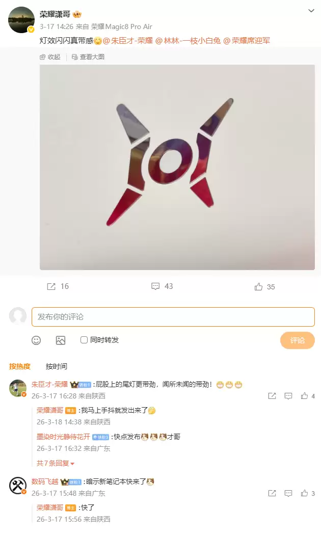 紧接着,荣耀中国区智慧生活业务部部长林林正式确认,这款新品隶属于荣耀的WIN系列。系列归属的明确,意味着其将承载荣耀在高端性能笔记本市场的核心战略。