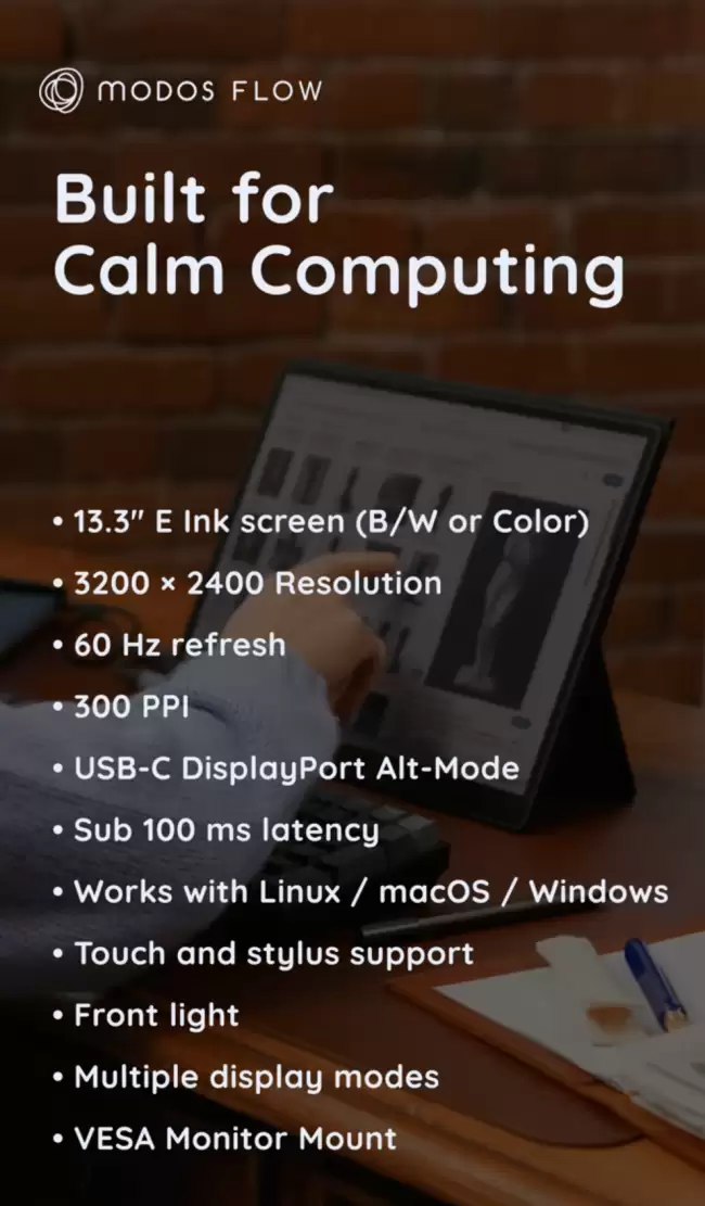 在Kickstarter上,海外厂商Modos新上架的Flow墨水屏显示器,引起了不少数码爱好者和专业人士的关注。它不止是一块“护眼”的屏幕,更想成为你桌面上的多面手。