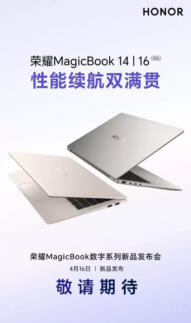 结合早些时候的官方信息来看,荣耀这几场发布会的档期已经全部敲定。其中,主打“性能续航双满贯”的MagicBook数字系列,将率先于4月16日登场。而更受硬核玩家关注的荣耀WIN游戏本,以及面向主流市场的X14 Plus / X16 Plus笔记本,则安排在一周后的4月23日集中发布。