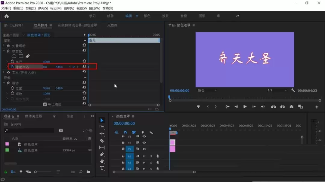 添加效果后,选中文字图层,切换到“效果控件”面板。在这里,你能看到刚刚添加的“球面化”效果及其参数。
