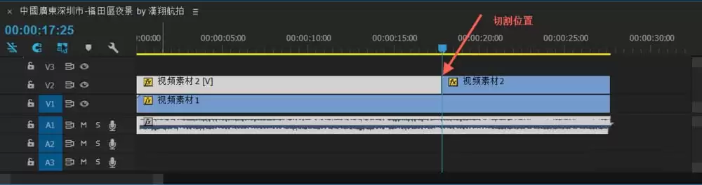 执行后你会发现,软件自动在播放指示器的位置将素材切割开了,并且后半部分直接转换成了冻结帧。这样一来,视频会正常播放到该点,然后画面便静止不动了。下图清晰地展示了切割前后的变化。