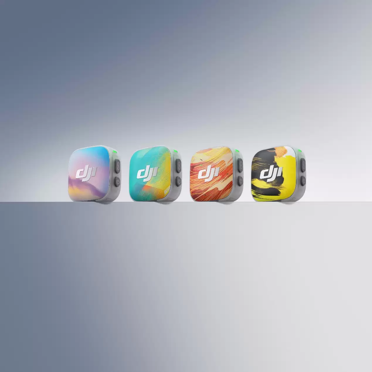 那么,艺术家眼中的麦克风应该是什么样?倪传婧的答案很明确:让它从幕后走到台前。在她看来,传统的麦克风总被看作是藏在镜头后的工具,而这次,她想打破这个固有观念。她把DJI Mic Mini 2本身看作一个“取景框”,然后用自己的画笔,为这个框填上了四幅描绘人生不同阶段的插画——“拂晓”“青驰”“炽盛”“砺金”。这样一来,这个小巧的硬件就不再只是硬件,而被赋予了叙事的生命力。她的期待是,用户能根据当天的心情、穿搭的色彩,来选择不同的前盖,让创作工具本身也成为个人表达的一部分。