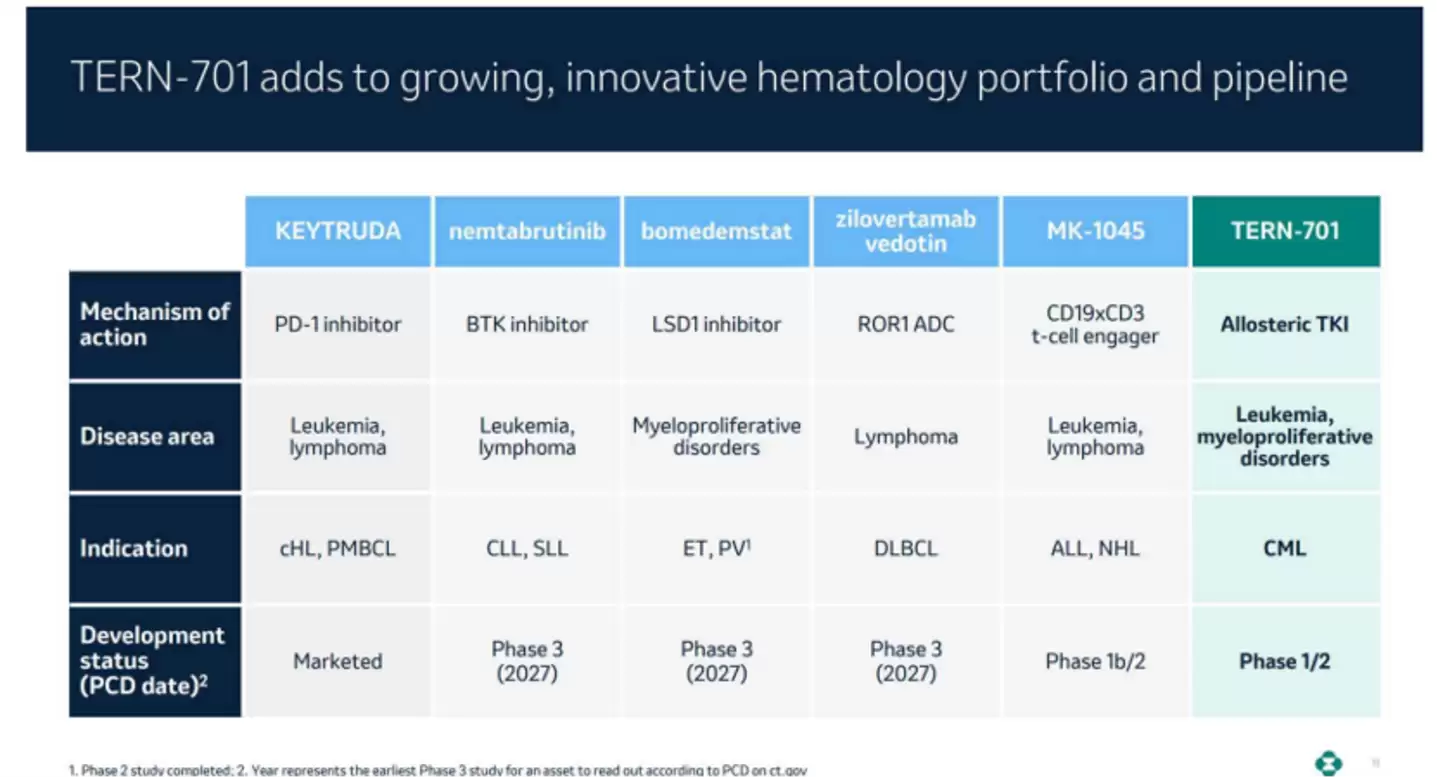 随着TERN-701的加入,默沙东在血液瘤赛道的版图又落下重要一子。正如公司在交易发布会上所阐述的:“此次收购依托我们在肿瘤学领域的深厚专业知识,进一步强化并完善了不断拓展的血液学产品管线。该管线作为肿瘤学业务部门的重要组成部分,具有巨大的未来商业化潜力。”