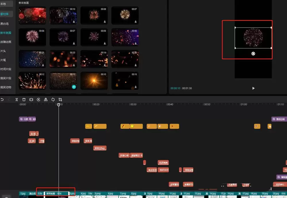 最后,点击预览看看效果吧。如果觉得烟花绽放的时间长短不合适,直接拖拽特效条的两端就能轻松调整时长,直到你满意为止。
