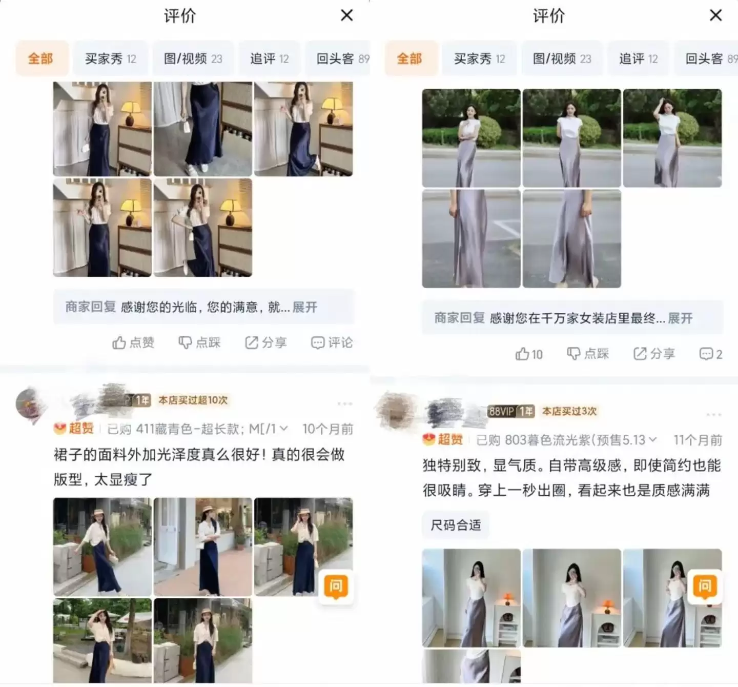 消费者干嘛费这功夫?真相可能是,很多评价压根不是消费者写的,而是商家为了刷好评采取的手段。潘哥在淘宝一家女装店就发现,某款连衣裙的好评区前排,晒图模特清一色是高挑身材、白色上衣,站在相似的精致背景前,连文案都像是一个模子刻出来的。
