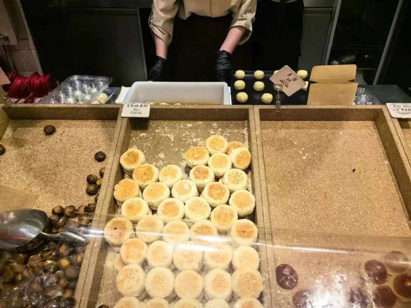 走进这些门店,你会发现产品大多可以试吃,有店员提供服务,坚果、果干和烘焙产品被装在透明包装里整齐陈列——整个场景,有点像缩小版的山姆或盒马的烘焙区,体验感瞬间就上来了。