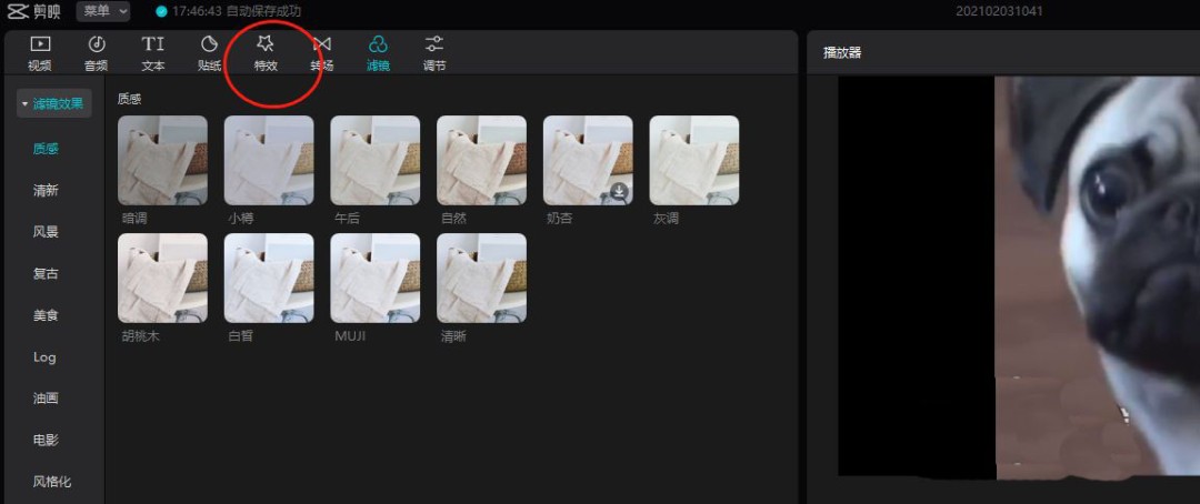 重头戏来了。在时间轴区域选中你的视频片段,然后注意界面下方那一排功能图标。找到并点击“特效”入口。