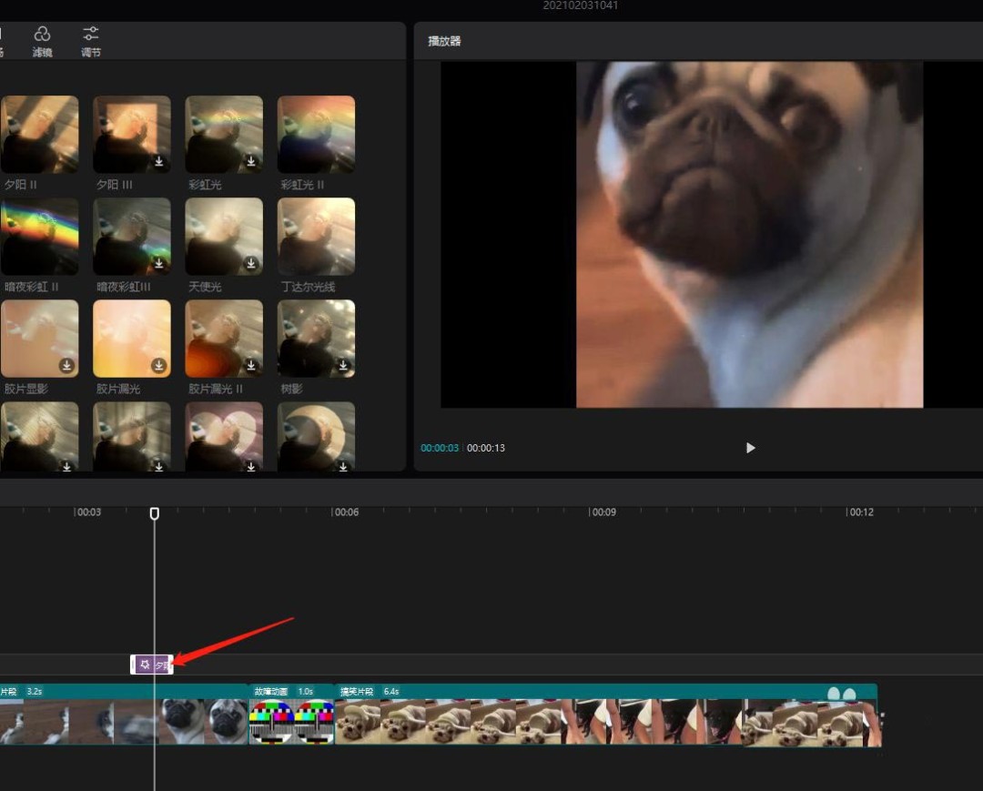 当然,默认的持续时间不一定完美匹配你的视频。这时,你可以用鼠标指针选中时间轴上的特效片段,通过拖拽它的首尾两端,自由调整夕阳效果出现和消失的时间点,直到与视频节奏完全契合。