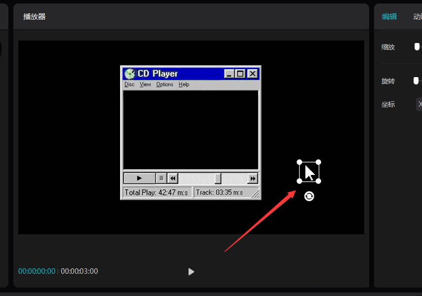 接着,向后拖动时间轴上的播放头,到你希望鼠标移动结束或点击发生的时间点。此时,画面上的鼠标还是停留在原处。