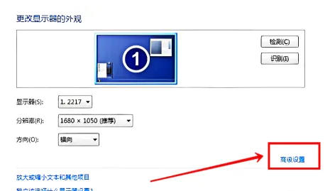 进入分辨率设置页面后,别急着调分辨率,请点击页面下方的【高级设置】按钮。