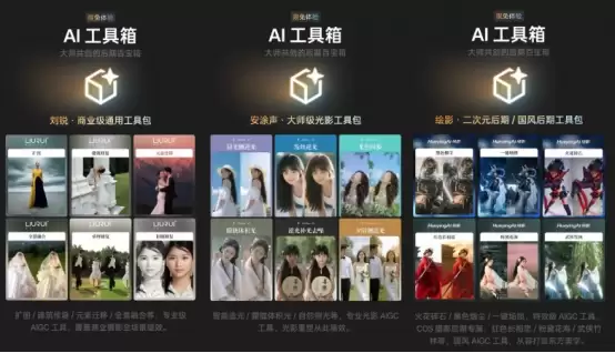 像素蛋糕9.0通过与刘锐、安涂声、绘影等业内顶尖大师深度合作,将专业级的AIGC能力直接封装成简单易用的“AI工具箱”。这使得每个有创作想法的人,都能实现过去只有“后期技术大师”才能完成的效果。工具箱涵盖了商业级的图像修复、大师级的光影塑造,以及二次元与国风的风格化创作。过去,实现类似效果需要修图师自行部署复杂的ComfyUI工作流,面临学习成本高、设备要求高、上手门槛高的“三高”难题。而现在,像素蛋糕通过整合各类顶尖后期能力,显著降低了AIGC效果的使用门槛,并能实现客片交付级的品质。这些出色的大师级能力被集成进像素蛋糕,让更多用户真正实现“点一下即出图”,让每个人都能成为自己生活的视觉大师。