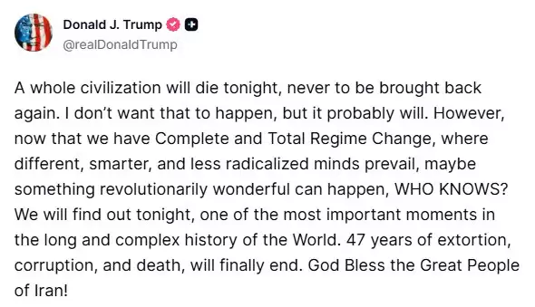 您的位置:首页 >特朗普:今晚整个伊朗文明将会消亡