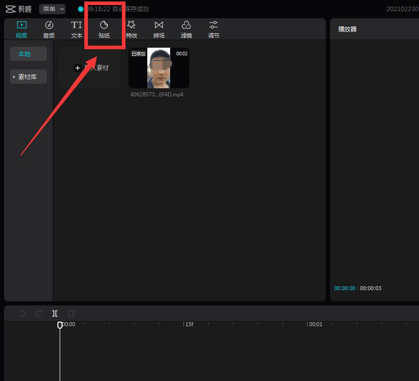 素材就位,现在该请出咱们的“主角”工具了。注意看软件界面顶部的工具栏,找到那个“贴纸”选项。点开它,一个充满趣味贴纸的素材库就会呈现在你面前。