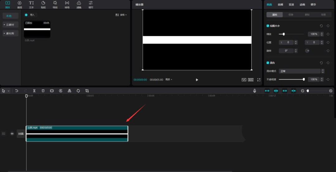 接下来,回到剪映,新建或继续你的项目。点击“导入”,把刚刚生成的那条白线视频素材导入进来,并拖到新的视频轨道上。