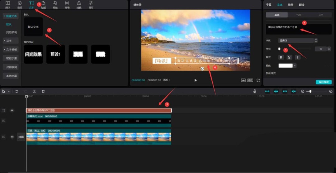 最后一步,自由发挥的时刻。再次通过“文本”功能添加一个新的字幕层,输入你想展示的正文内容,选择一个喜欢的字体。然后,只需将这个文本框拖拽到我们已做好的、悬浮于视频上的那个字幕条框内即可。