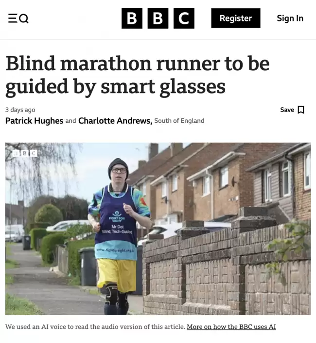 您的位置:首页 >英国盲跑者借助智能眼镜挑战马拉松识别赛道和方向