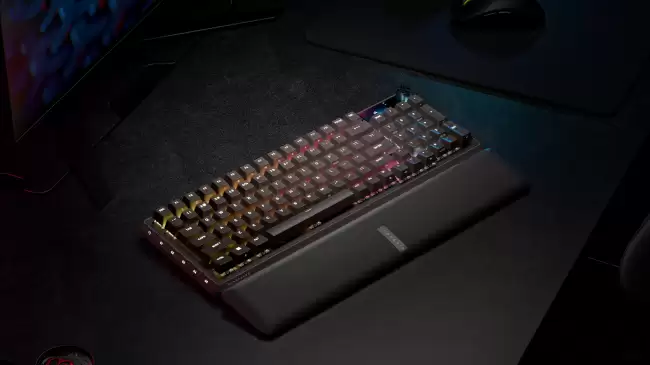 键盘依然采用备受好评的96%紧凑配列。设计上的巧妙之处在于,它在左侧集成了多达6个可编程的G键,对于需要复杂宏命令的游戏玩家或创作者来说,这无疑是个效率利器。右上方区域则是功能核心:一块1.9英寸、分辨率达320×170的IPS LCD显示屏,搭配一个多功能转盘旋钮,状态显示与快捷调节一手掌握。更值得一提的是,键盘上配备了一个专用的Elgato按键,一键即可呼出虚拟Stream Deck界面,与海盗船的Elgato生态无缝整合,直播推流、内容创作变得异常便捷。