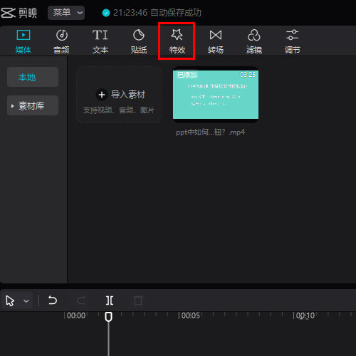 进入软件后,注意力请移到顶部菜单栏。看到“特效”选项了吗?直接点击它。