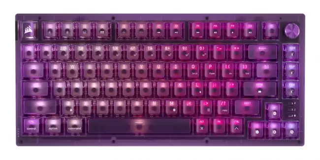 如果你对90年代末那些半透明紫色游戏机记忆犹新,那么CORSAIR海盗船这份最新的“情怀杀”,恐怕很难让你不动心。近期,海盗船为其K65 PLUS WIRELESS系列75%配列机械键盘增添了全新成员——原子紫配色款。这可不是简单的换色,其设计精髓在于完全复刻了经典游戏机的半透明紫色风格,整体视觉效果既张扬又充满复古趣味,在一众键盘中绝对能脱颖而出。