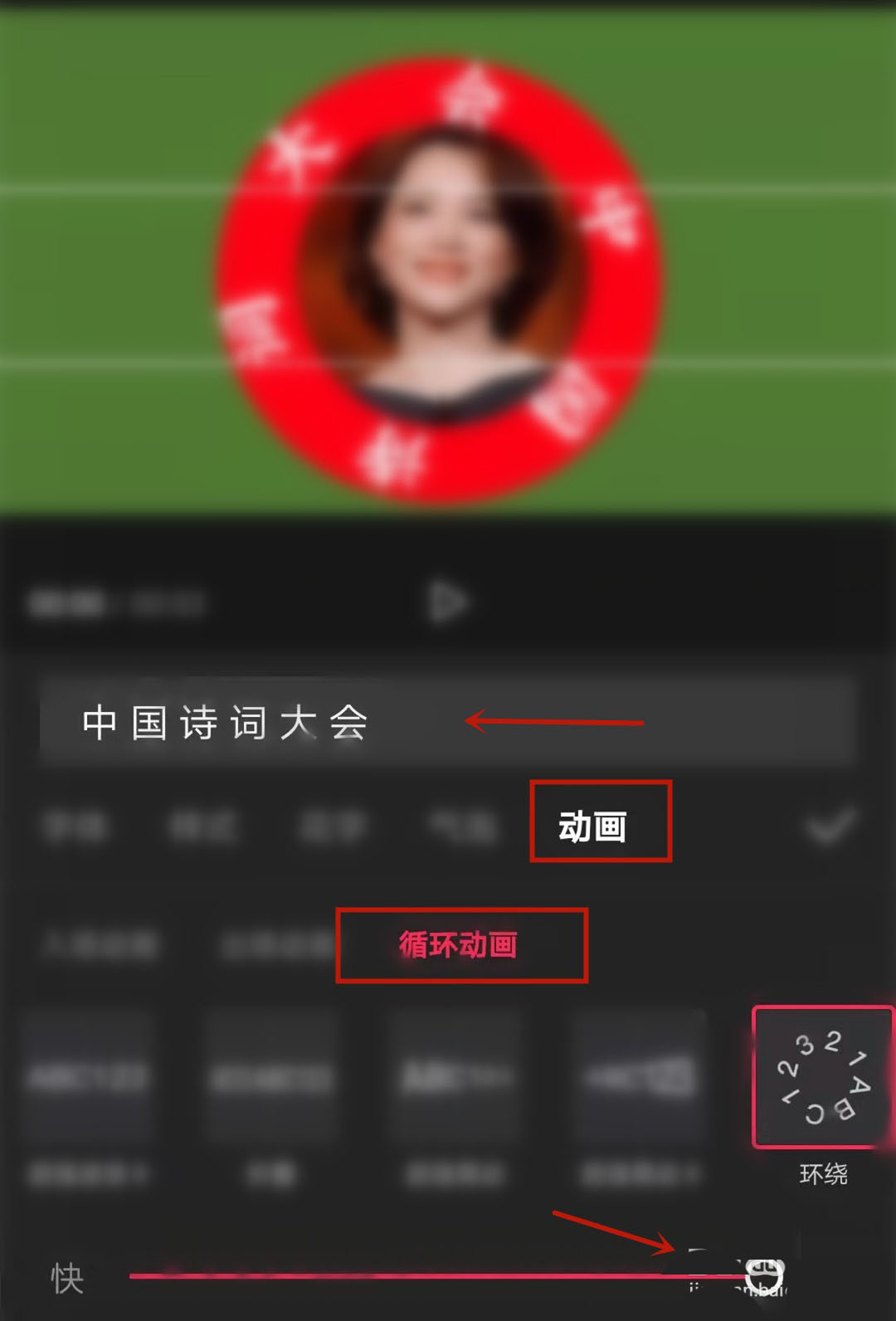 重头戏在动画设置:点击“动画”,在“循环动画”的分类里,找到“环绕”效果并应用。这时候,文字就会开始围绕屏幕中心旋转了。