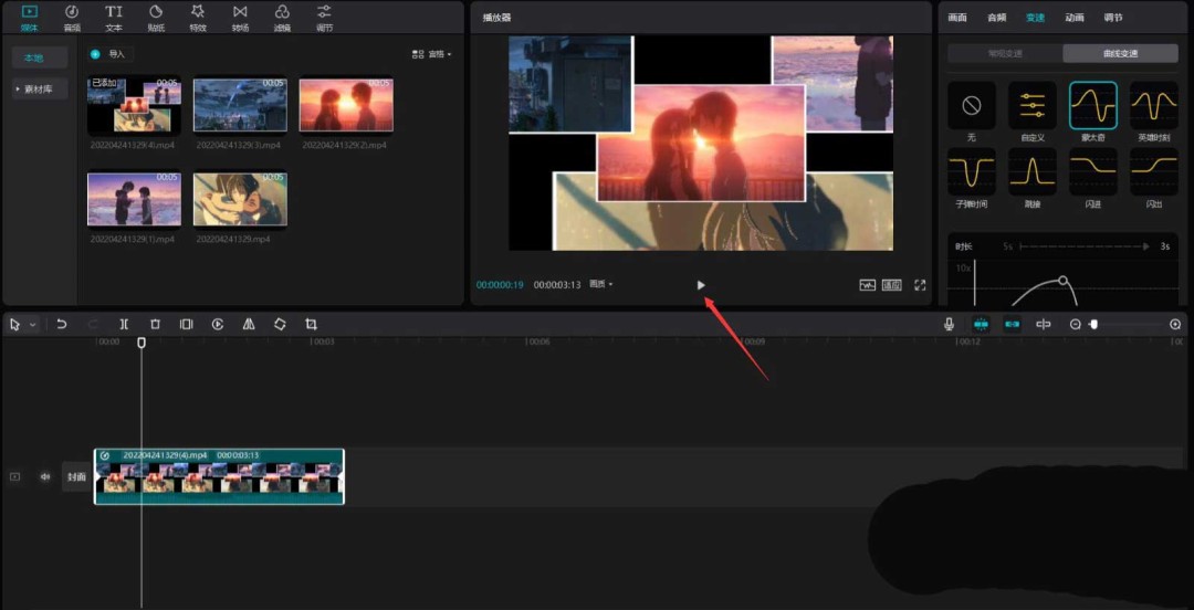 想让推进过程更有节奏感?可以点击“变速”按钮,选择“曲线变速”里的“蒙太奇”模式。这个预设能让镜头在开始时缓慢,中间加速,结尾又变慢,效果非常专业。