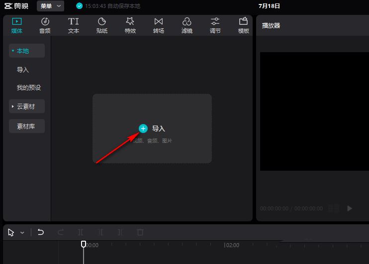 进入编辑页面后,首要任务是把含有白色底Logo的视频素材导进来。在界面左上角或指定区域找到“导入”按钮,点击它,准备选取你的文件。