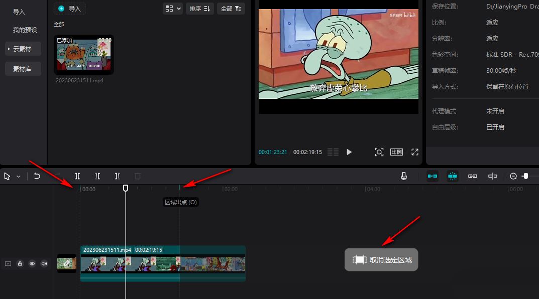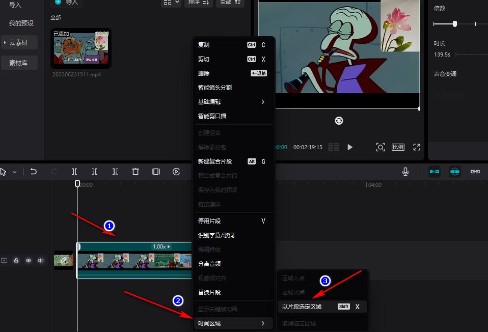看,整个操作其实非常直观。通过设定这个“时间区域”,你可以方便地只对选中的部分进行预览、导出或应用效果,而不会影响到片段的其他部分,这大大提升了剪辑的效率和精准度。