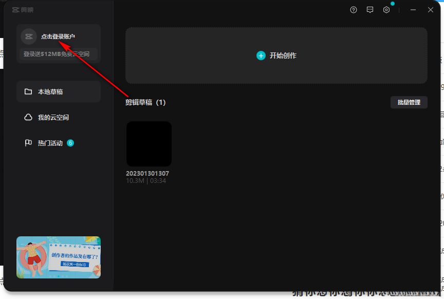 首先,在你的电脑上打开剪映专业版。看到主界面左上角那个醒目的【点击登录账户】按钮了吗?对,第一步就是点击它。