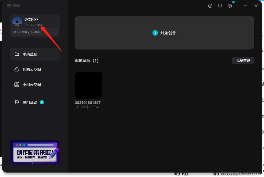扫码授权成功后,电脑版剪映左上角就会显示你的账户昵称。注意看,这和你在手机剪映上使用的昵称是完全一致的,这说明账号已经成功关联了。