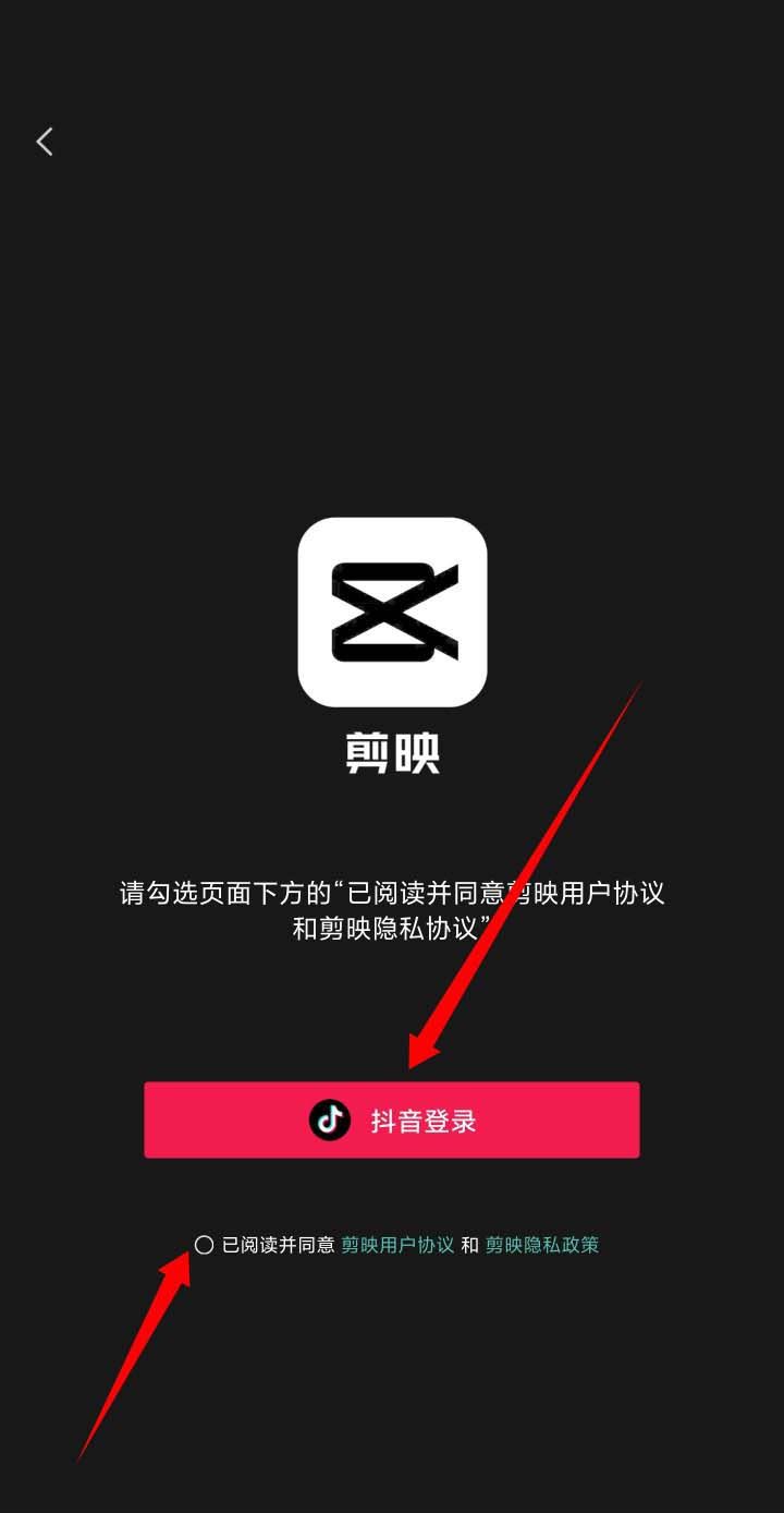 最后一步,在登录界面勾选同意用户协议,然后选择【抖音登录】。完成这一步,你的手机剪映就和电脑版彻底桥接成功了,云端项目数据将实现实时互通。